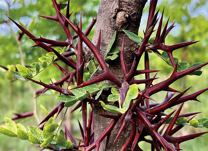 皂角樹多年生枝,以及樹干生長棘刺,棘刺多數(shù)分枝,刺粗壯,通常分枝即刺上長刺。皂角刺入藥可活血并治瘡癬,消腫排膿,搜風拔毒等等。藥用價值很高。